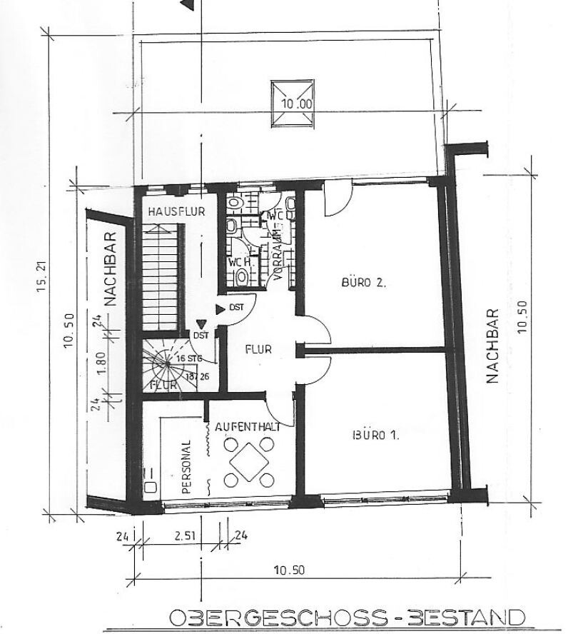 Das Büro befindet sich im ersten Obergeschoss eines Geschäftshauses mit 3 Einheiten. Die Gesamtfläche der Einheit beläuft sich auf ca. 78 m².