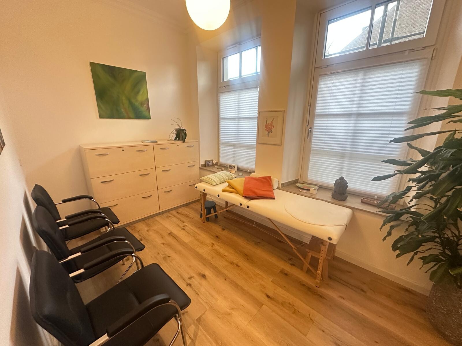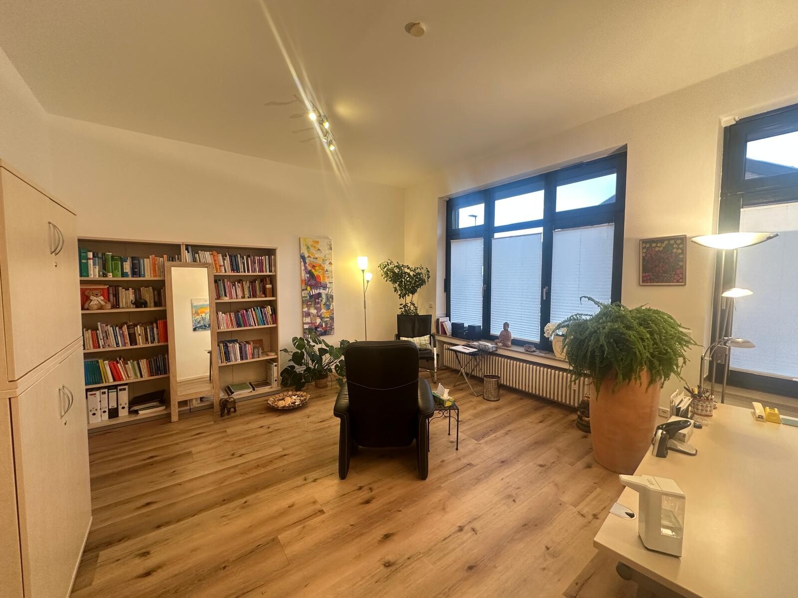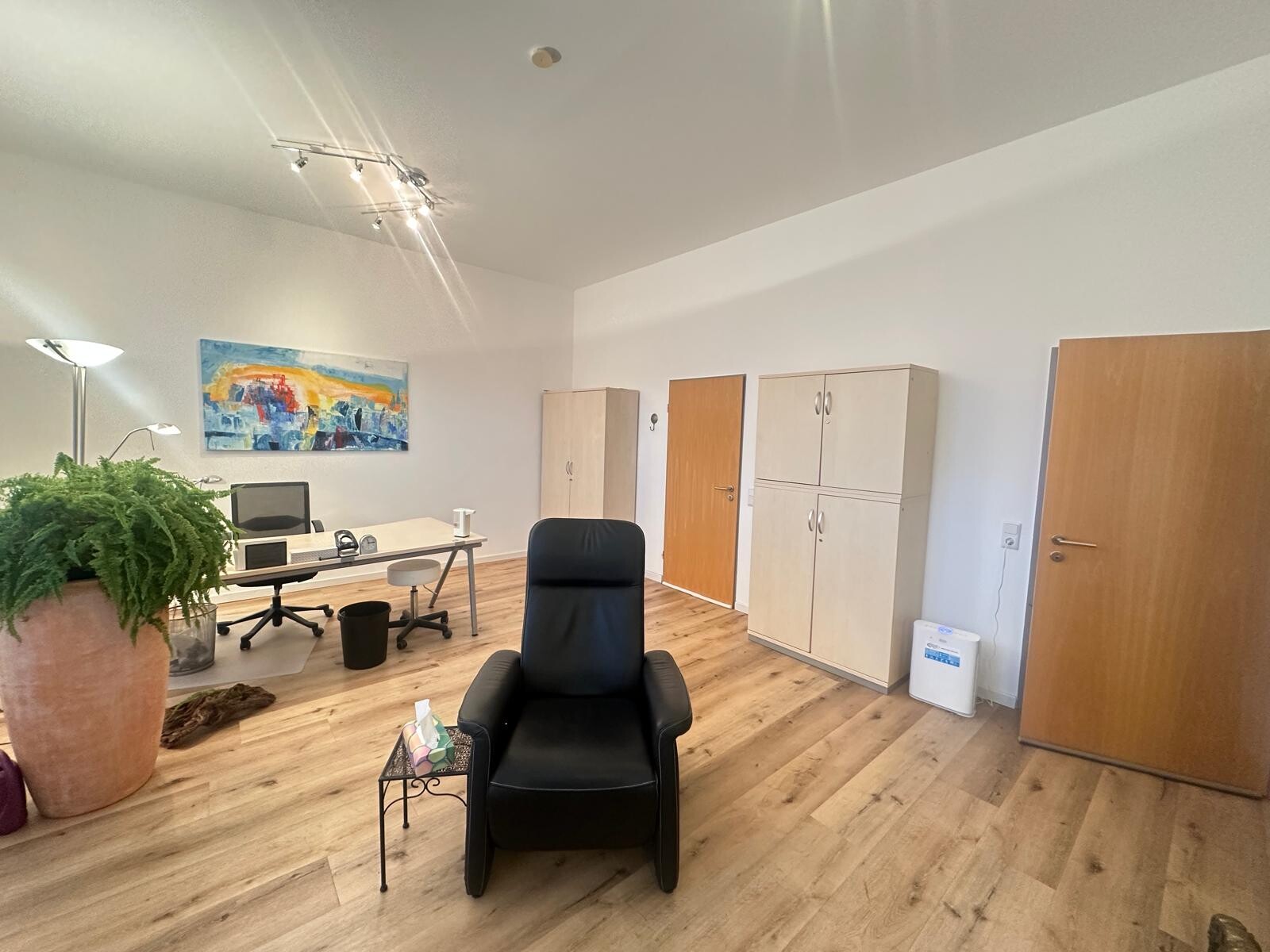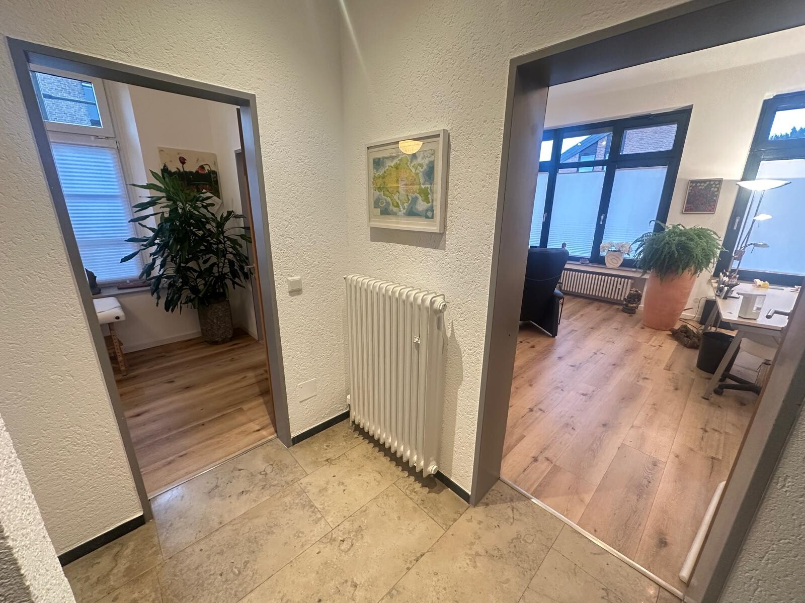 1 kleinerer Büroraum, welcher aktuell als Wartezimmer genutzt wird und ein großer Büroraum. Beide Räume sind vom Eingangsbereich des Objektes zu erreichen und sind zusätzlich über eine Tür miteinander verbunden.