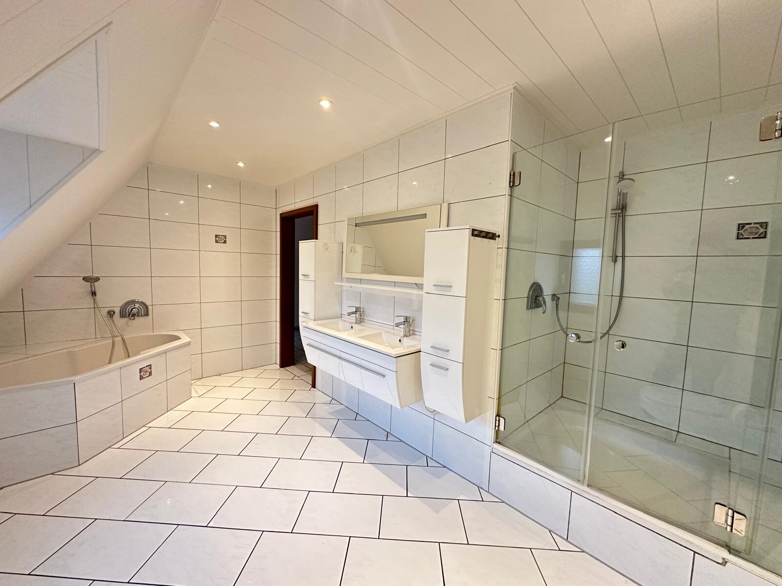 Der Hauptenergieträger ist eine Gaszentralheizung, welche ebenfalls die Warmwasseraufbereitung übernimmt und zuletzt ca. 2019 ausgetauscht wurde. Im Erdgeschoss und Dachgeschoss wurde eine Fußbodenheizung installiert, im Keller verfügt das Objekt über Wandheizkörper. Die Kunststofffenster mit Doppelverglasung stammen aus dem Ursprungsbaujahr und sind alle mit Rollläden ausgestattet. Zum Teil sind die Rollläden bereits elektrisch. Im gesamten Objekt dienen Fliesen als Bodenbelag. Im letzten Jahr wurde im Wohn-/Esszimmer sowie in den Schlafzimmern im Dachgeschoss ein Vinylboden über den Fliesen verlegt. Beide Badezimmer wurden im Laufe der vergangenen Jahre ebenfalls modernisiert.