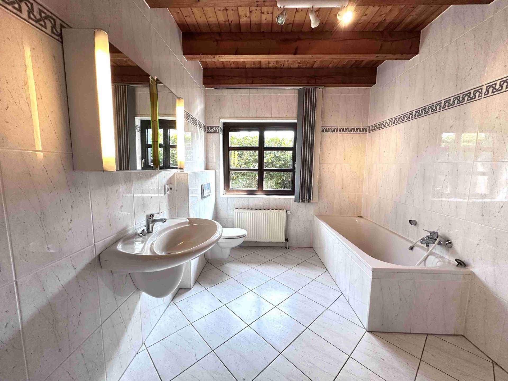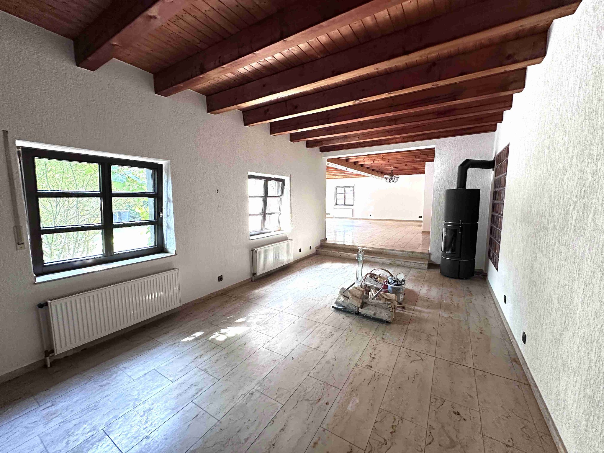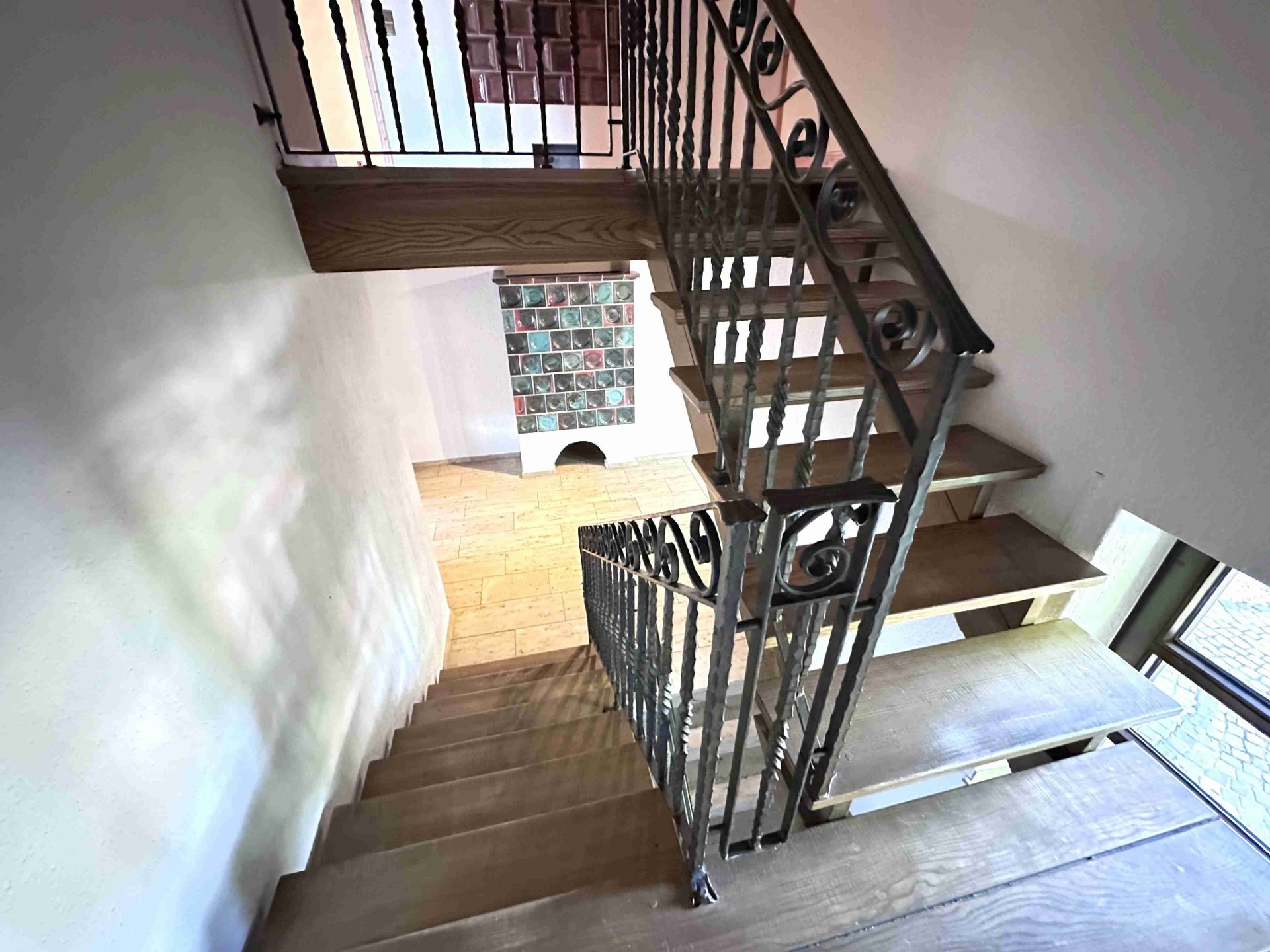 Der Hauptenergieträger ist eine Ölheizung aus dem Ursprungsbaujahr, welche ebenfalls die Warmwasseraufbereitung übernimmt. Die Holzfenster mit 2-fach Verglasung stammen ebenfalls aus dem Ursprungsbaujahr und sind mit manuellen Rollläden ausgestattet. Die Bodenbeläge variieren zwischen Laminat/Fertigparkett in den Schlafzimmern und der Diele im Dachgeschoss, Fliesen in den Badezimmern und dem Kellerbereich sowie Feinsteinboden in der Diele im EG, dem Gästezimmer, der Küche und dem Wohn-/Esszimmer. Das Objekt verfügt über einen Kamin im Esszimmer sowie einen Kachelofen im gesamten Treppenhaus, welcher die Heizung im Winter unterstützt.