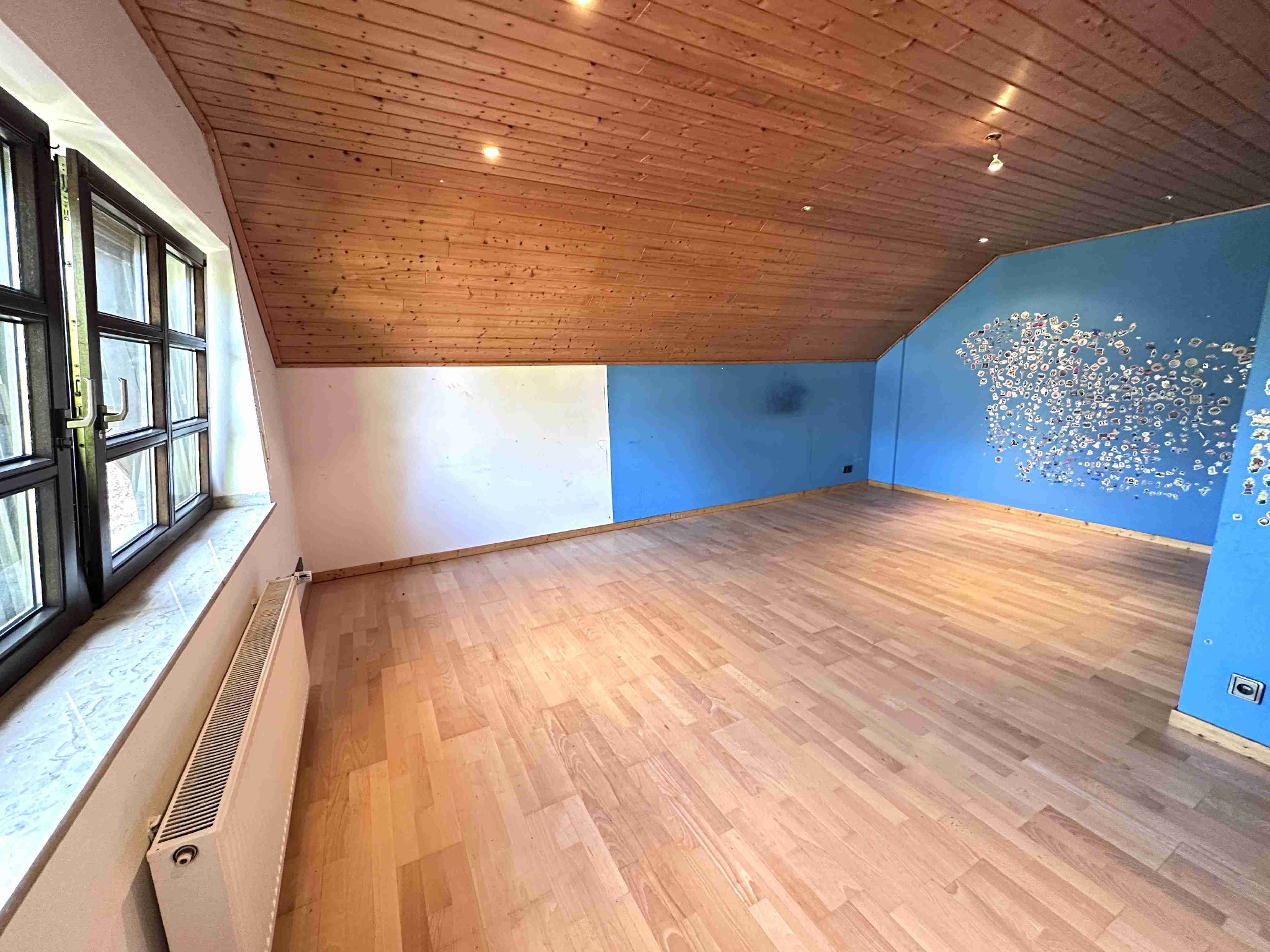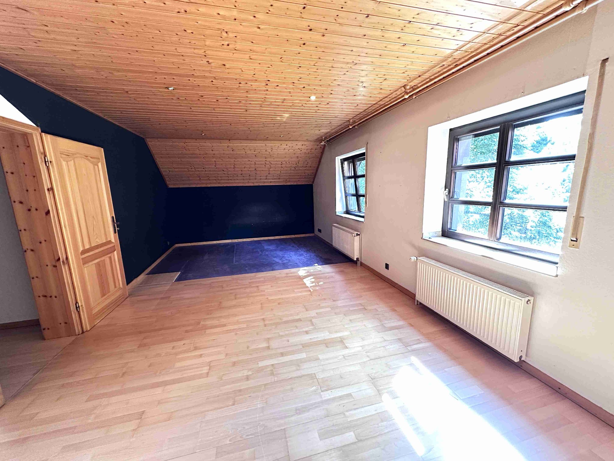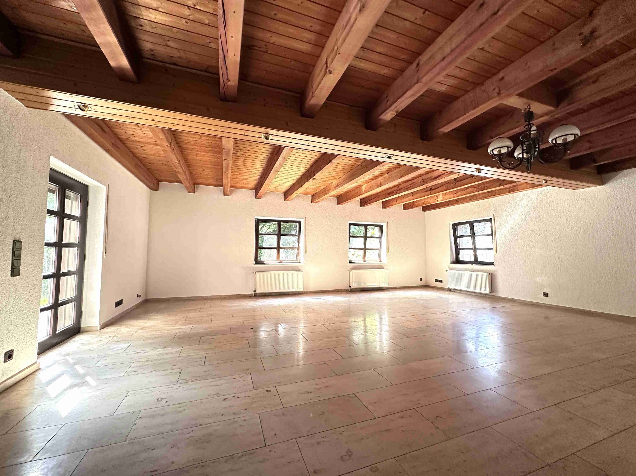Der Hauptenergieträger ist eine Ölheizung aus dem Ursprungsbaujahr, welche ebenfalls die Warmwasseraufbereitung übernimmt. Die Holzfenster mit 2-fach Verglasung stammen ebenfalls aus dem Ursprungsbaujahr und sind mit manuellen Rollläden ausgestattet. Die Bodenbeläge variieren zwischen Laminat/Fertigparkett in den Schlafzimmern und der Diele im Dachgeschoss, Fliesen in den Badezimmern und dem Kellerbereich sowie Feinsteinboden in der Diele im EG, dem Gästezimmer, der Küche und dem Wohn-/Esszimmer. Das Objekt verfügt über einen Kamin im Esszimmer sowie einen Kachelofen im gesamten Treppenhaus, welcher die Heizung im Winter unterstützt.