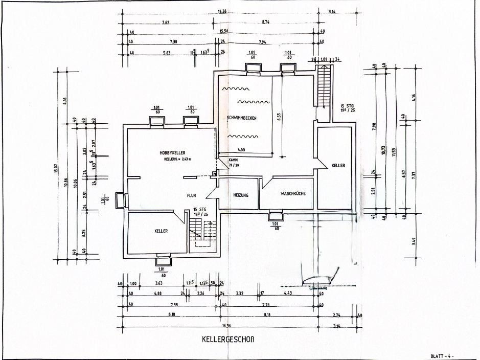 Keller: Diele, Heizungskeller, Waschküche, vorbereitetes Gäste-WC, Hobbykeller, Kellerraum mit vorbereitetem Schwimmbecken, Badezimmer mit Dusche und 1 weiterer Kellerraum.