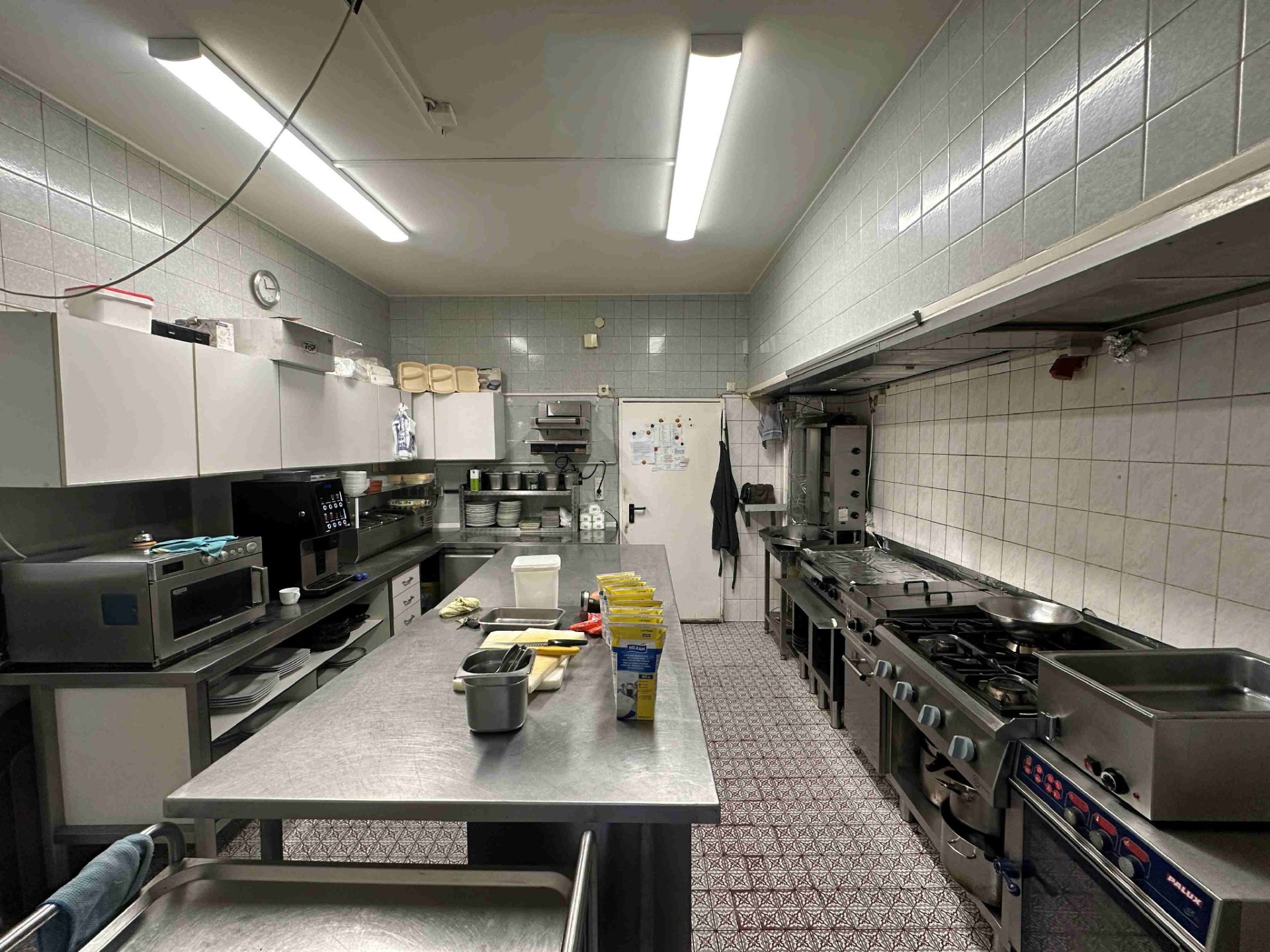 Keller: Unterhalb des Restaurants befinden sich die voll ausgestatteten Damen- und Herrentoiletten. Im Keller des Hauses befinden sich das Getränkekühlhaus sowie drei weitere Lagerräume, von denen einer als Raum für den Fettabscheider dient.